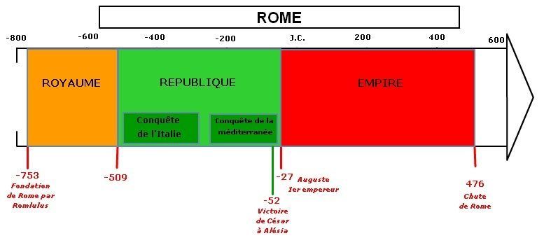 Rome a été fondée en … avant J.C. L'histoire de la cité dure de …… avant J.C. à …… soit années.