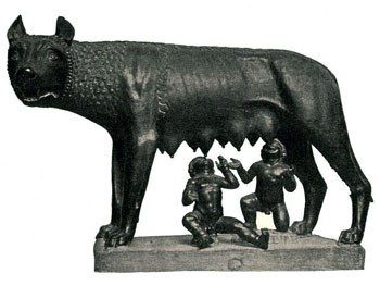 louve romaine : selon le mythe, Romulus et Rémus ont été allaités par