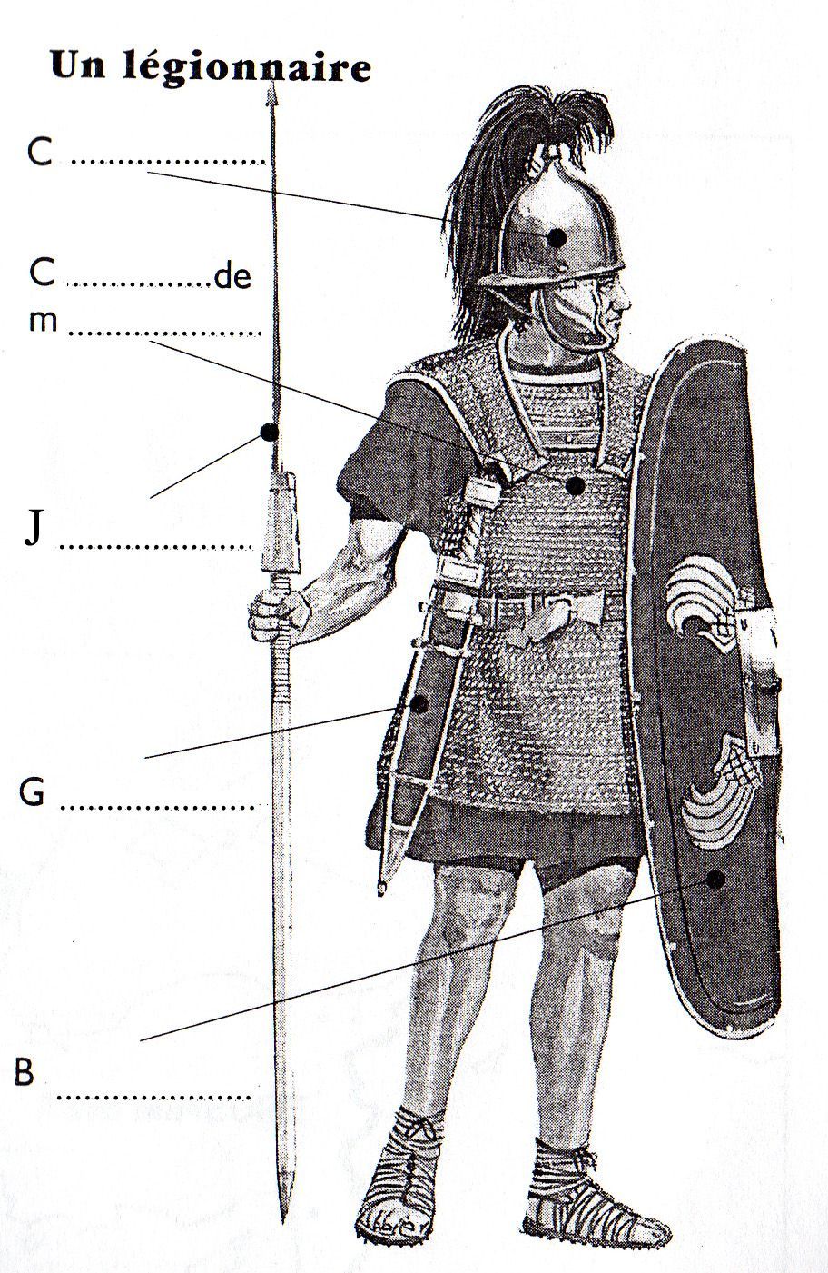 Imprimer l'image du légionnaire romain (on peut aussi la trouver ici) et la coller dans le cahier. A colorier et compléter avec la page 130. Cliquer ici pour en savoir plus sur le légionnaire romain.